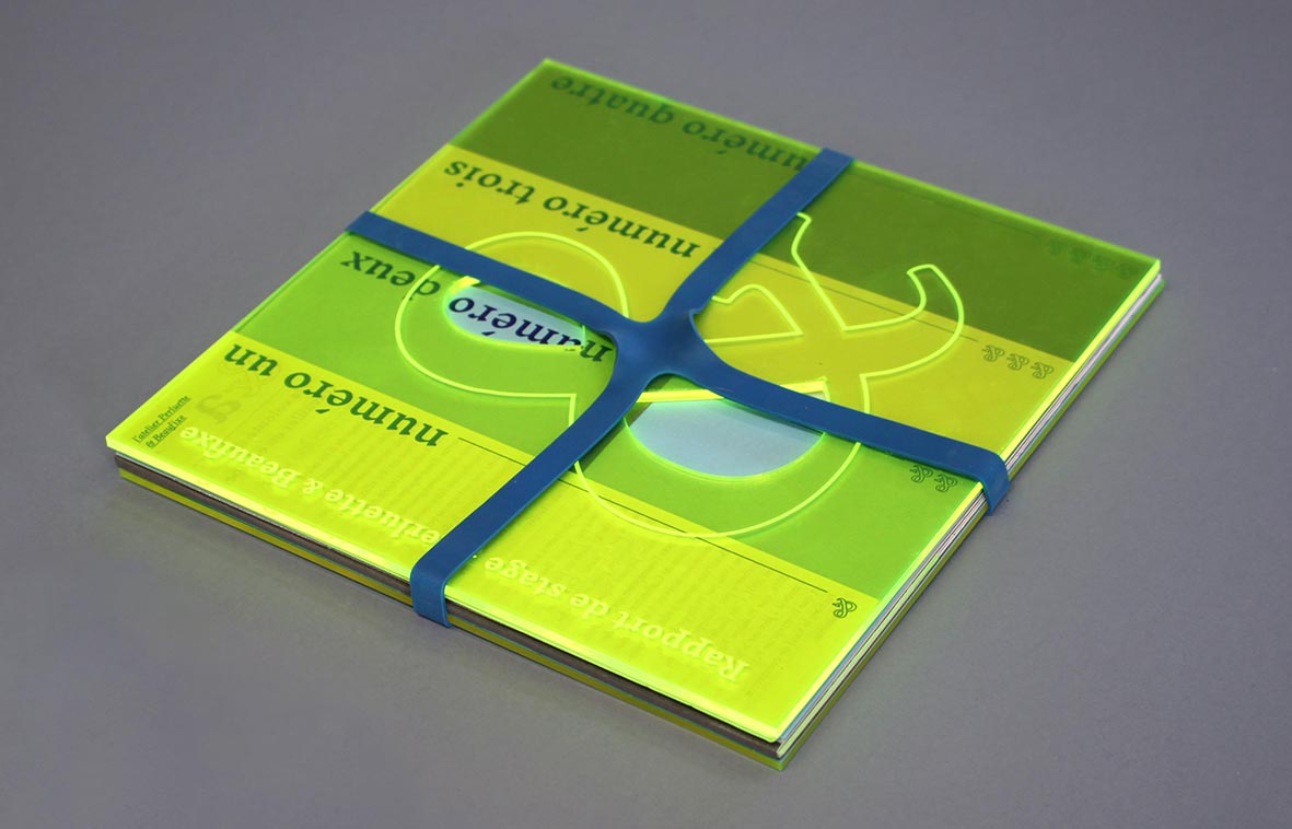 La couverture est réalisée en plexiglas citron néon découpé et gravé à la découpe laser